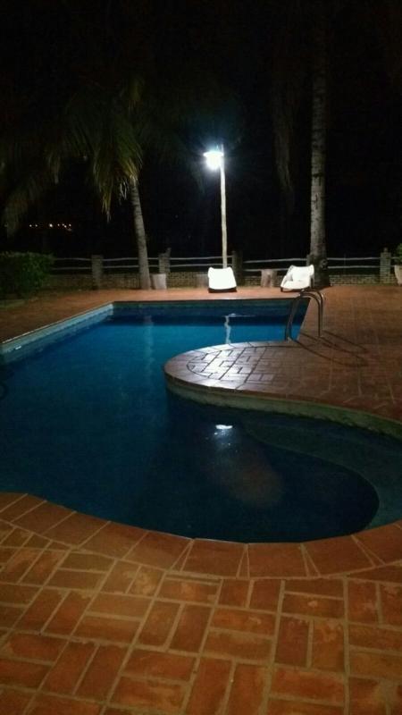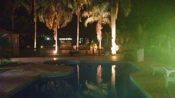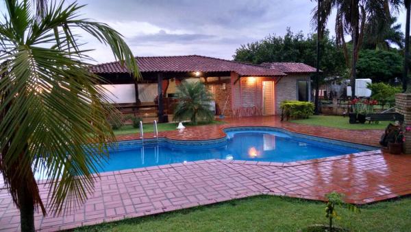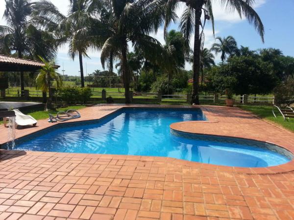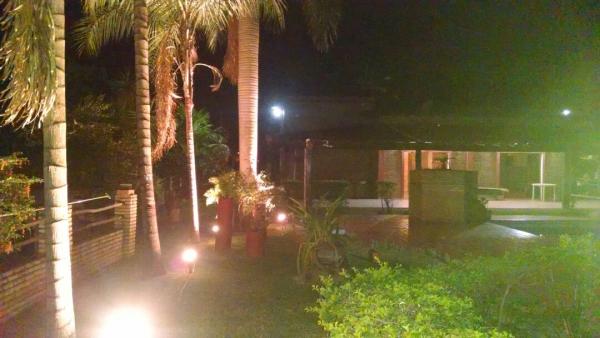 Conta com estacionamento para 80 veículos, todos acomodados dentro da chácara, que conta com 11 mil metros quadrados, toda fechada em alambrado, com muita área verde e natureza, dentro da cidade.