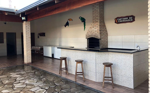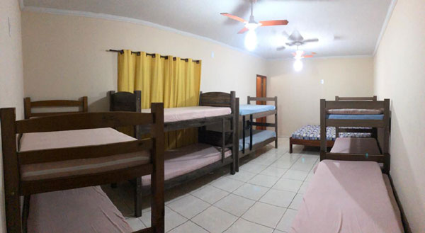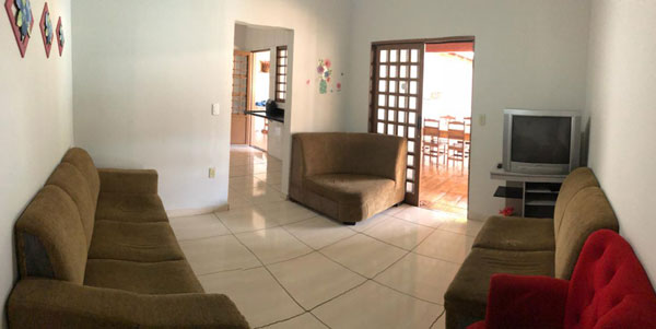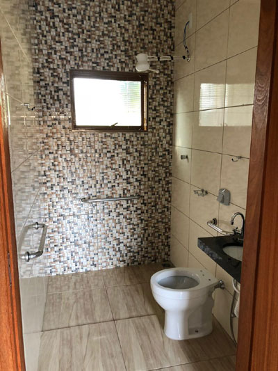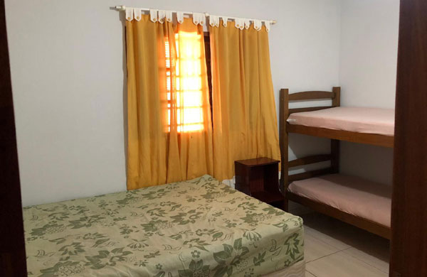 Casa avarandada com 3 dormitórios, 2 tipo apartamento, acomodações para 22 pessoas, 5 banheiros, todos com chuveiro quente, sendo 1 com acessibilidade.