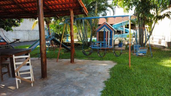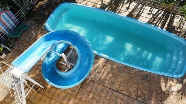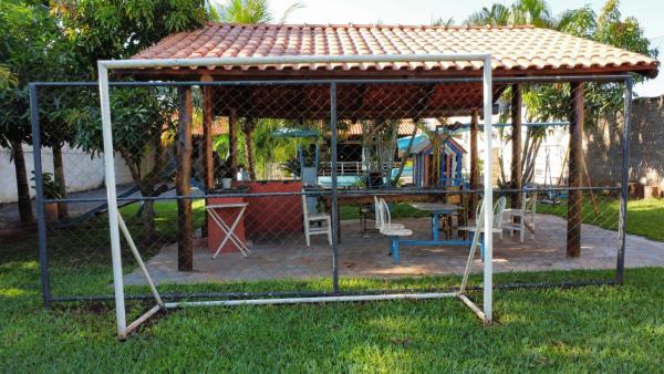 Salão de festas para 350 pessoas com balcão americano e 2 churrasqueiras de alvenaria, opção de 190 cadeiras de ferro. Piscina de fibra cercada com toboágua. Mini-campo de futebol, playground e estacionamento interno para 25 veículos.