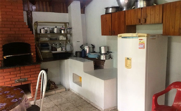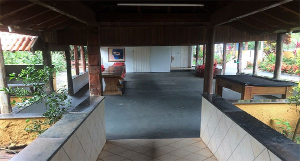 Salão de festas para 100 pessoas, com churrasqueira grande, mesa de bilhar, sanitários masculino e feminino.