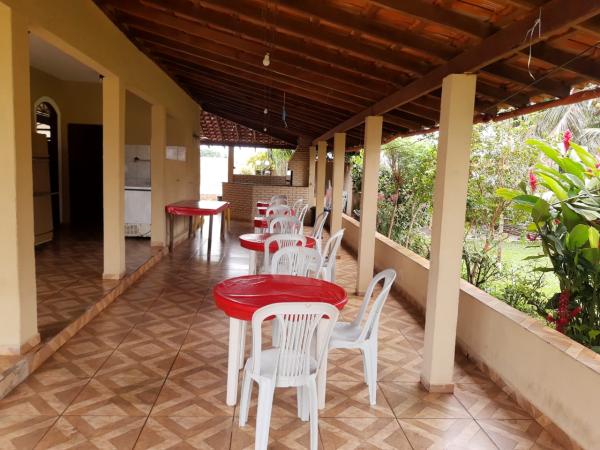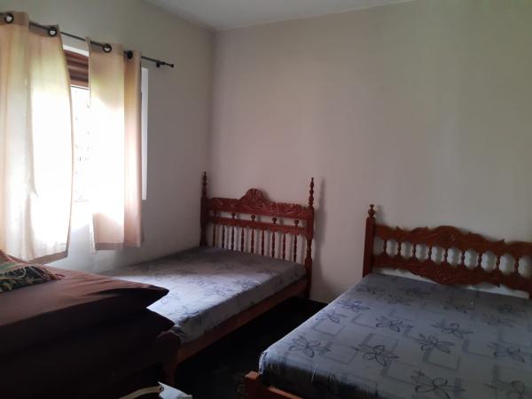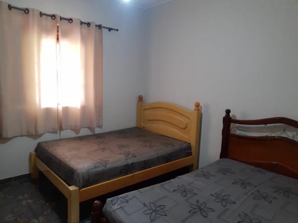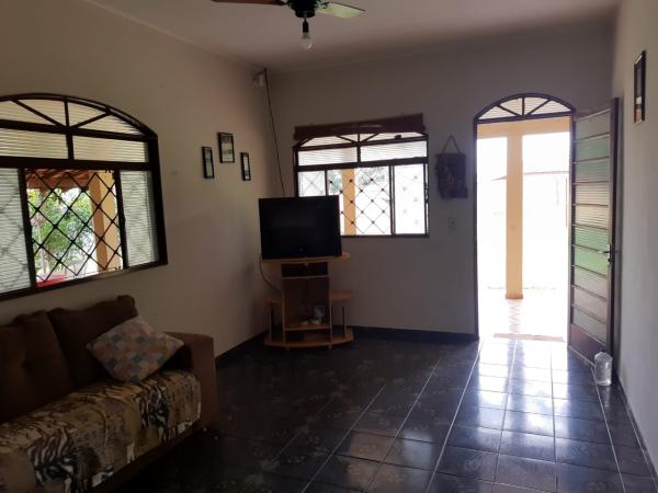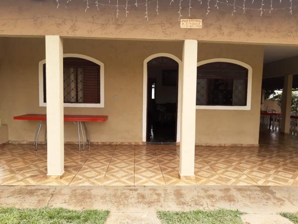 Casa avarandada com 2 dormitórios, todos com ventilador de teto, acomodações para 11 pessoas.